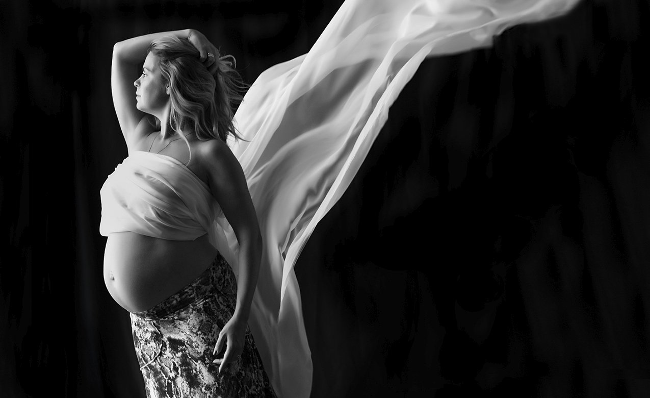As to what to wear, I'll cover that during our consultation but most of my clients enjoy a combination of fully clothed and artistic nudes in their portraits. I encourage you to bring whatever you feel comfortable wearing -- I love those formfitting bodycon dresses (check out Wolford lingerie). Honestly: the simpler, the better. Classic, elegant lingerie & maternity skirts, bandeau tops create beautiful, timeless images. I have some lovely maternity dresses for you to try here, along with flower headpieces, crowns, etc. You are welcome to bring accessories, as well -- flowers, hats, boots, jewelry -- it's all good. We will review this & talk ideas during your consultation. Ask me about print and product packages for maternity/newborn sessions, too.